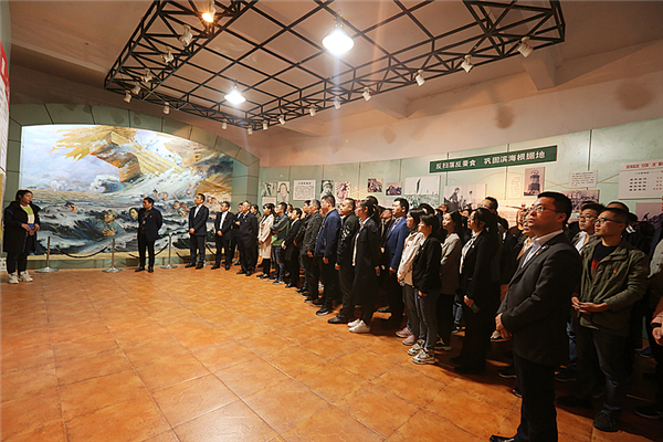 在小沙東海戰烈士冢前,大家為長(cháng)眠于此的革命先烈敬獻花籃,三鞠深躬,深切緬懷為革命勝利而英勇捐軀的烈士英靈。黨委副書(shū)記、副總經(jīng)理王彤兵帶領(lǐng)大家重溫入黨誓詞,牢記黨的宗旨,牢記共產(chǎn)黨人的初心和使命,堅定理想信念。