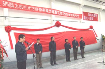 董事長(cháng)任桂芳在慶典儀式上鄭重地宣布中復連眾2007年第1000片1.5兆瓦風(fēng)力發(fā)電機葉片的順利下線(xiàn),它標志著(zhù)中復連眾成為國內兆瓦級風(fēng)力發(fā)電機葉片制造規模單打冠軍。中復連眾用了兩年半的時(shí)間走過(guò)了從“0”到“1”,再到“1000”的發(fā)展道路,一路上凝聚了從中央到地方各級領(lǐng)導的關(guān)注和支持,凝聚了所有中復連眾人的智慧和辛勞。12月20日,國務(wù)院副總理曾培炎蒞臨中復連眾視察,對中復連眾的發(fā)展風(fēng)力發(fā)電事業(yè)表示贊賞,對中復連眾的發(fā)展規模和發(fā)展速度給予了肯定,鼓勵中復連眾立足創(chuàng )新,盡快做大做強。2008年,中復連眾將在8月前完成三分廠(chǎng)四分廠(chǎng)的基建任務(wù),并新征廠(chǎng)區500畝,瞄準中國新能源裝備企業(yè)的標準要求,整體規劃、分布實(shí)施。