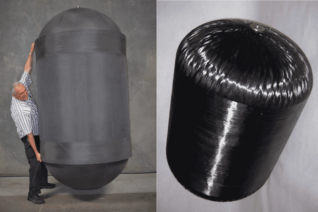 當你處理像液態(tài)氫這樣的燃料時(shí),容器重量的減輕會(huì )產(chǎn)生巨大的差異,因為液態(tài)氫本身的重量很輕。對于一個(gè)典型的壓縮氣體氫氣罐來(lái)說(shuō),燃料對滿(mǎn)罐重量的貢獻程度(質(zhì)量分數)一般只有10-11%。