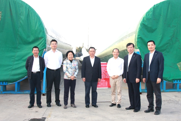 10月22日,中國建材集團公司總經(jīng)理、中國建材股份有限公司總裁曹江林,中國建材股份有限公司副總裁、中建材投資有限公司董事長(cháng)蔡國斌,巨石集團董事長(cháng)張毓強,北京弘毅投資顧問(wèn)有限公司董事總經(jīng)理邱中偉一行視察了中國復材集團在連兆瓦級風(fēng)電葉片、碳纖維和復合芯電纜項目,中國復材集團董事長(cháng)、總經(jīng)理張定金,黨委書(shū)記、副總經(jīng)理薛繼瑞陪同視察。